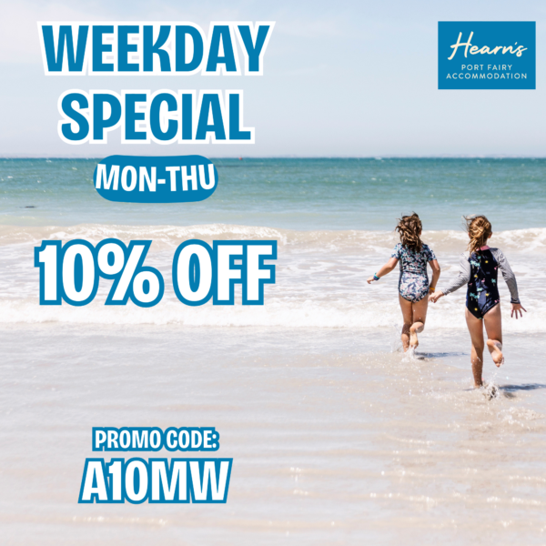 Enjoy a cozy winter escape in the beautiful coastal town of Port Fairy with our Mid‑Week Specials. Book a 2‑night stay at 10 Ocean Drive between Monday and Thursday during the winter months of March and April 2026 and save 10% on your getaway. Use promo code MWS10 to book now. Located along Victoria’s stunning… Continue reading 10% Discount @ 10 Ocean – Mid Week Stay