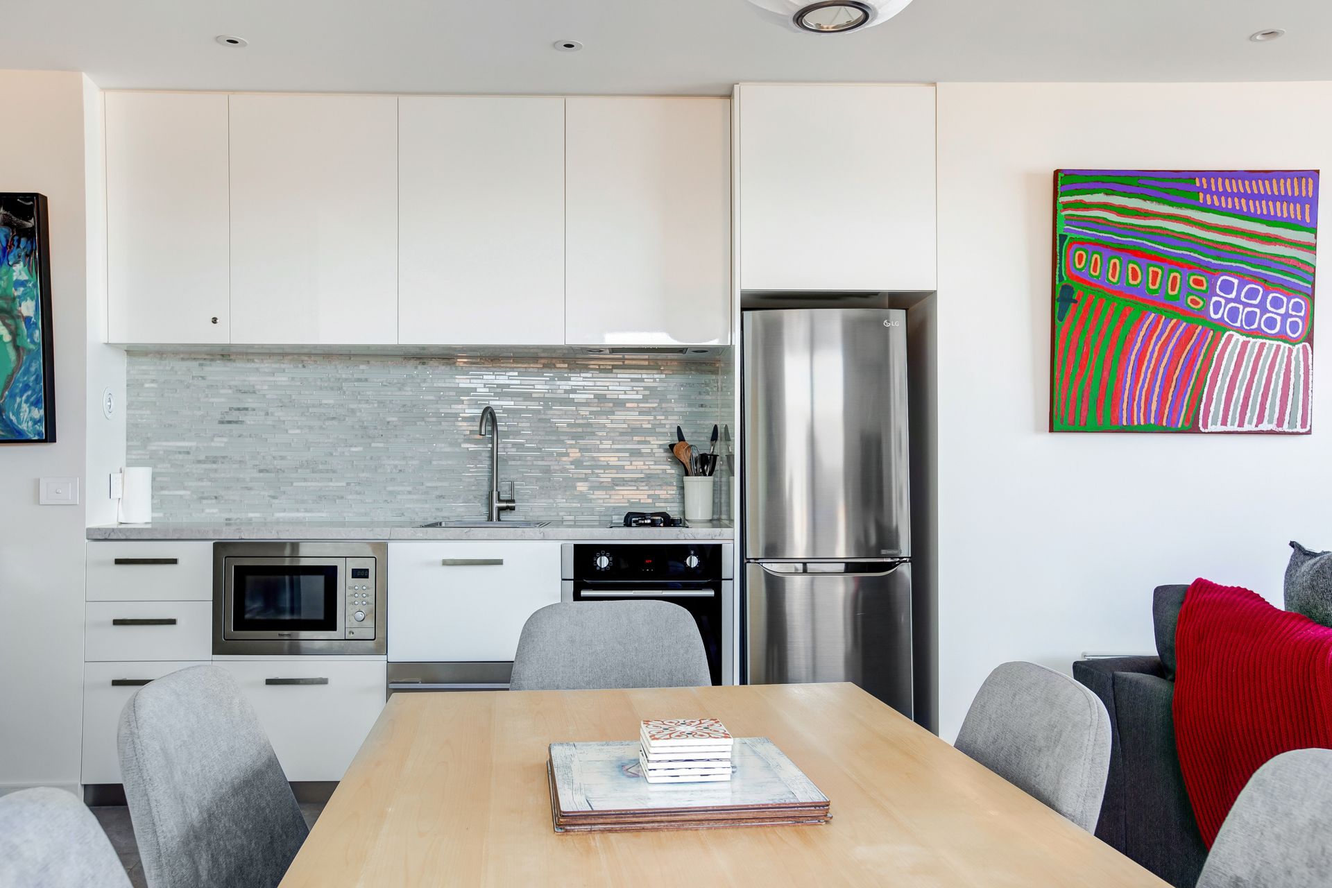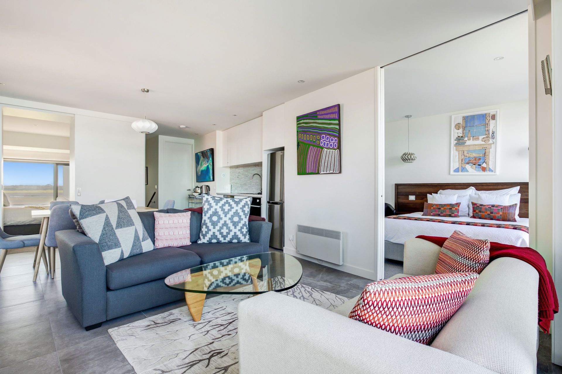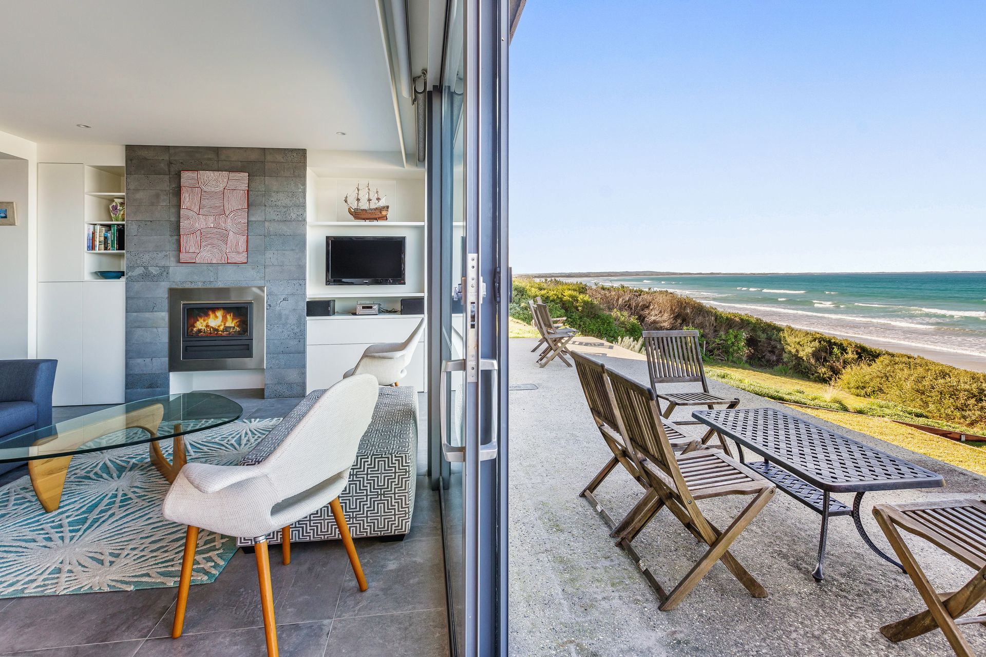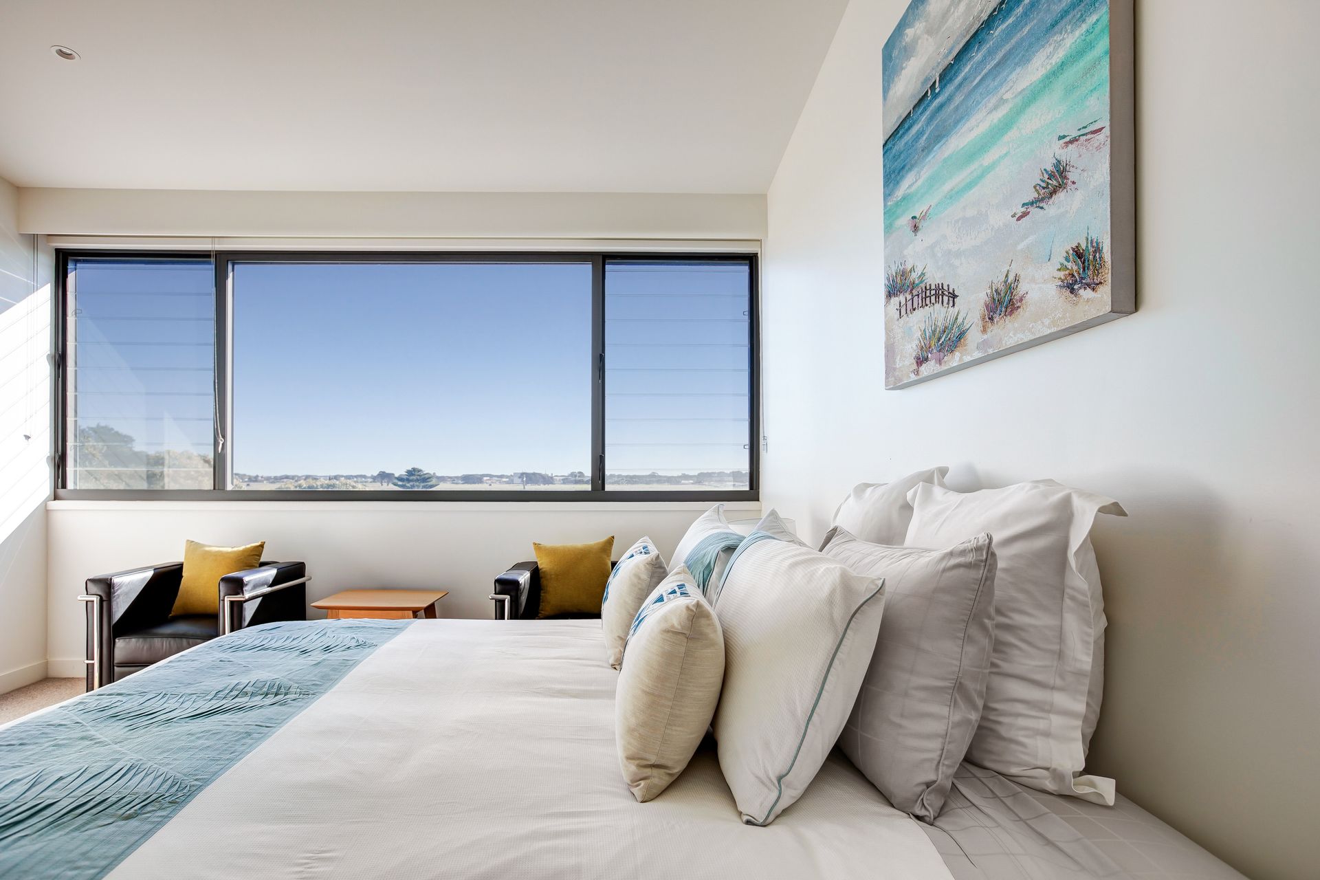 Aqua Mist is a luxurious, ultra-modern property boasting floor to ceiling ocean-views throughout. With stylish new furnishings, spacious living areas and multiple ocean-view balconies, this home is perfect for groups and families alike! When you walk through the front door into the foyer area, you will intriguingly walk to the first ‘studio style’ level. With expansive spaces, this studio style level is equipped with full size state-of-the-art kitchen facilities, laundry and separate Master Bedroom equipped with ensuite and robe. With direct beach access from your open plan living area through floor to ceiling bi-fold doors, this luxurious studio is like a special adult retreat for your group or family. Upstairs also features all the same qualities with a kitchenette / living / dining + laundering facilities, along with 2 spacious bedrooms equipped with King/ King single and a Queen Bed and 3 bathrooms and a powder room. If you're looking for a spacious, coastal getaway boasting modern clean lines, spacious bedrooms and in the most ideal location, then this beautiful house is for you! This property can accommodate 6 guests comfortably as per advertised rates.