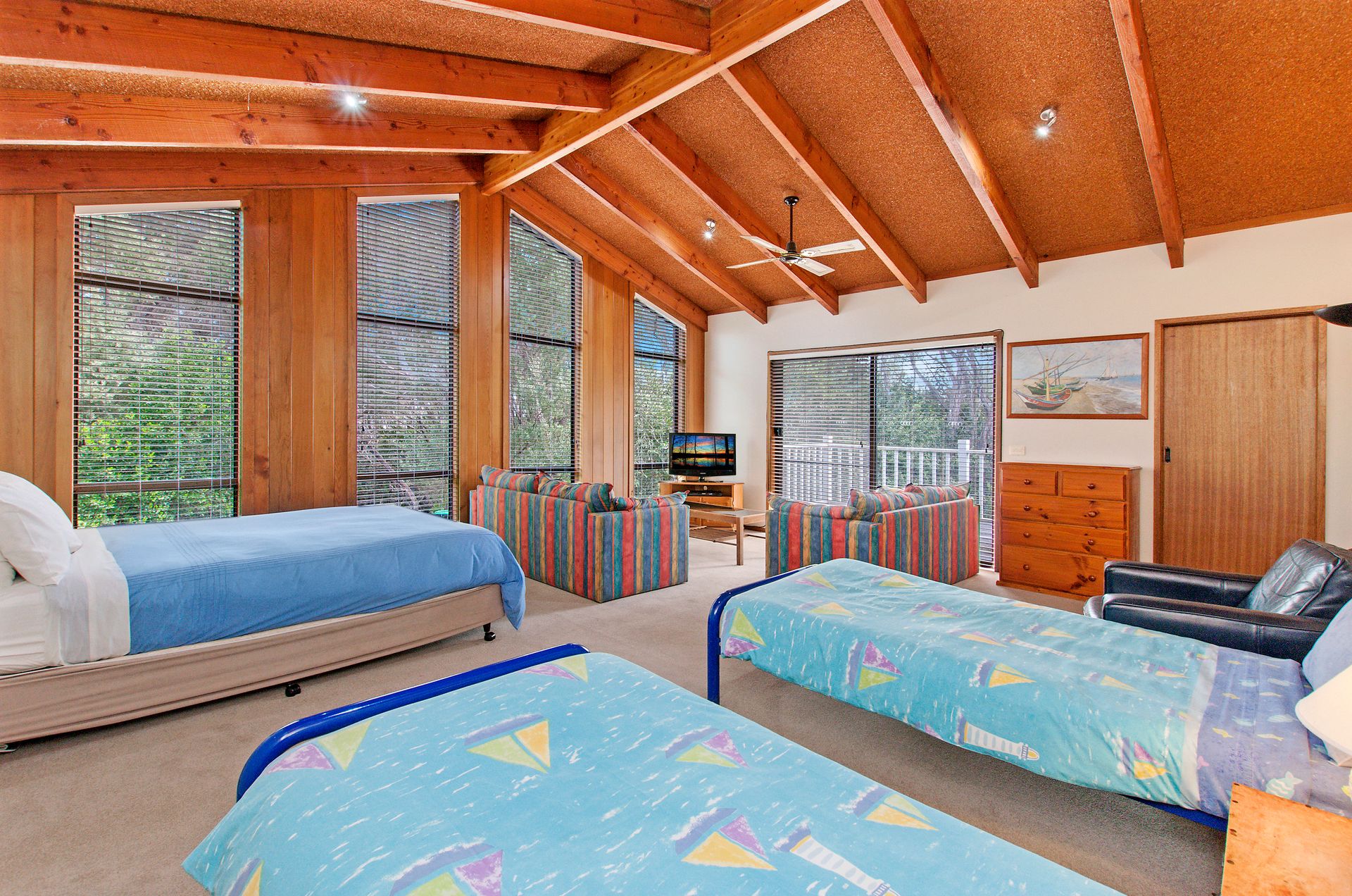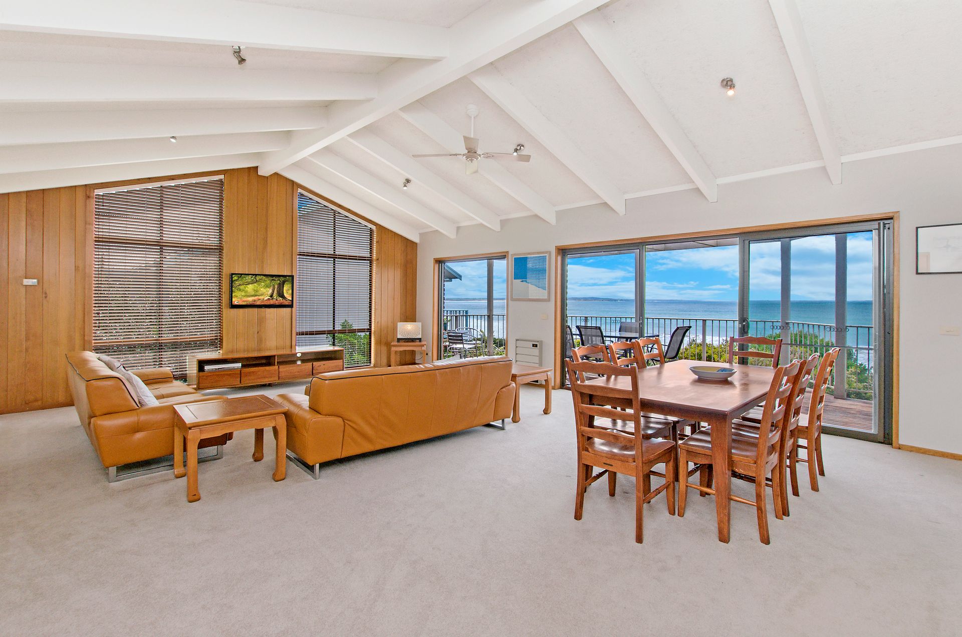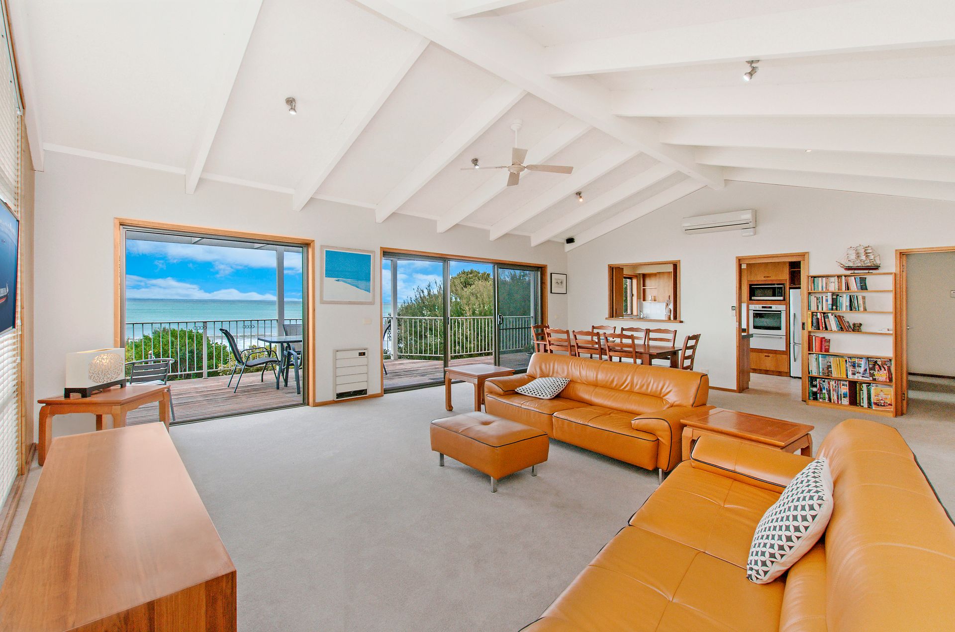 Set in East Beach ti-tree, this spacious, light-filled upper level apartment has stunning, panoramic sea views from the open-plan living/dining area, fully-equipped kitchen and full-length balcony. The master bedroom has a queen bed and ensuite, and is sea-facing. The second bedroom is spacious, outlook to Moyne River and has a queen and two single beds. Modern bathrooms have walk-in showers. Ideal for couples or families. Easy access to the beach right on the beachfront, a short stroll to town. This is the perfect retreat at any time of year!