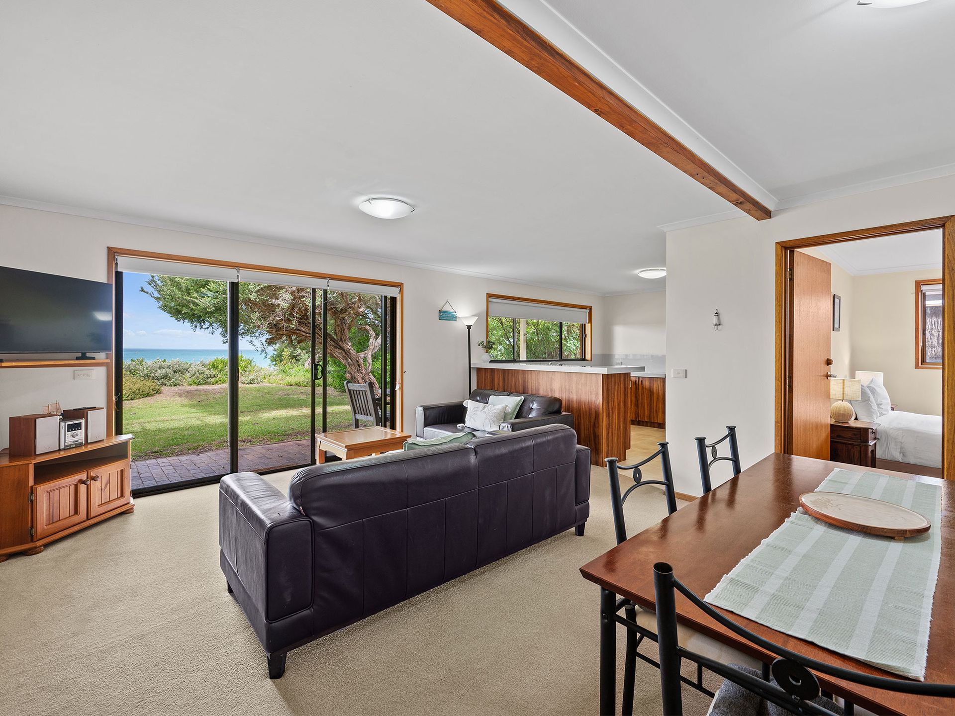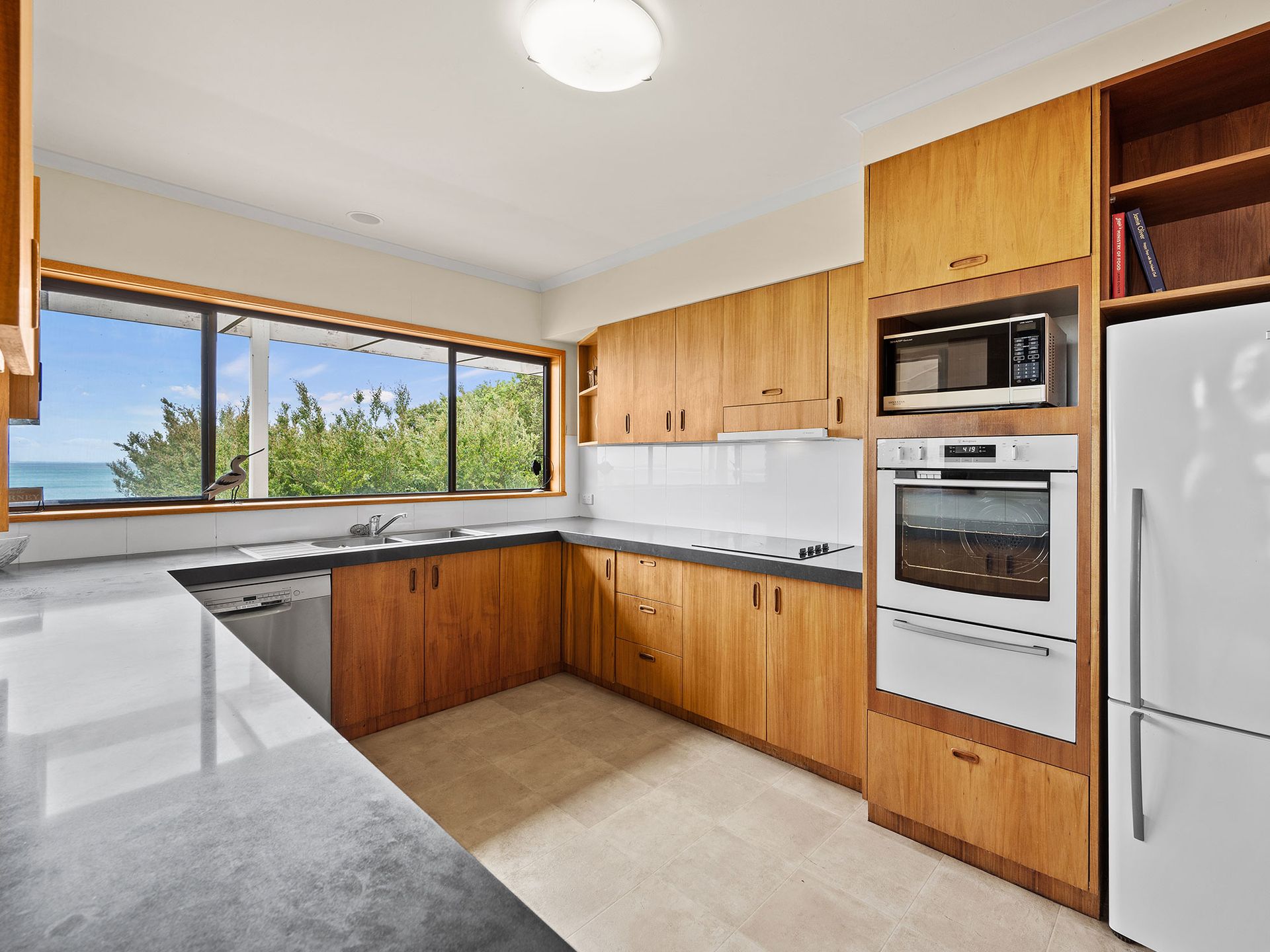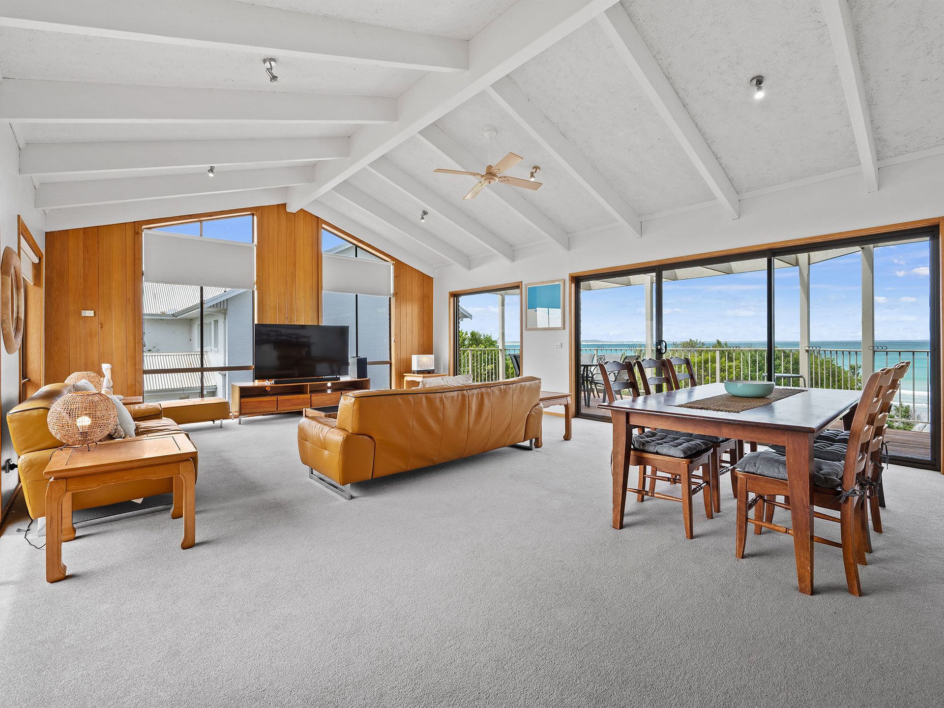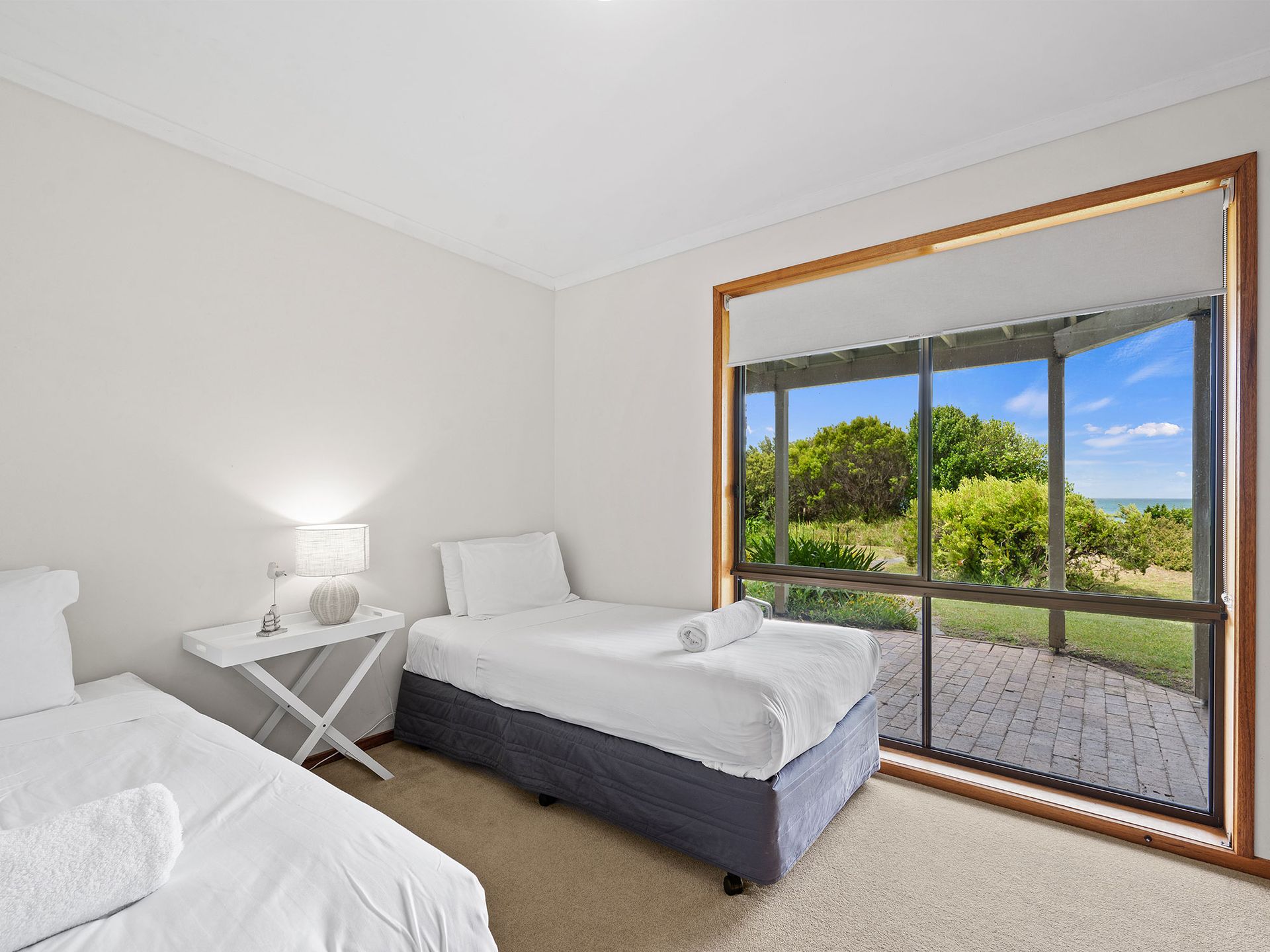 East Beach House is your coastal haven situated right on the beachfront between Moyne River and East Beach. It's an ideal getaway in all seasons for families or groups looking for space and comfort, stunning views, privacy and beach activities. Upper and lower levels both feature fully-equipped open plan kitchen / living / dining areas, great for relaxed entertaining. Other features include 5 bedrooms (sleeping up to 12), 4 modern bathrooms, laundry facilities and car parking. Enjoy breathtaking sea views from your ground-level eating area and garden, or upper level balcony. The property is a place of comfort and relaxation in a natural landscape where it is an easy stroll to town or down the steps for a walk along the beach.