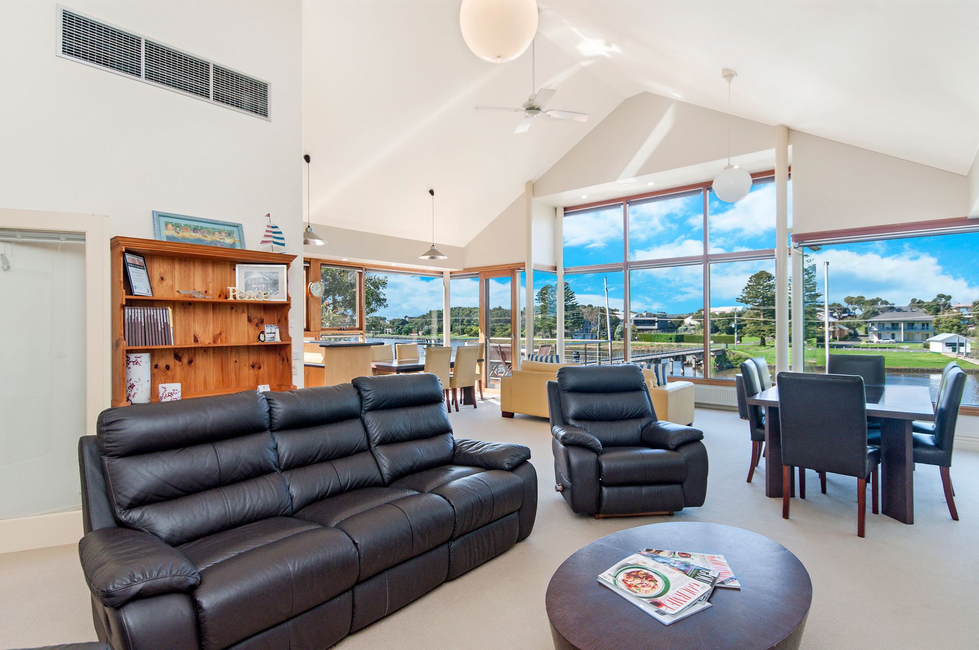 Shearwater Penthouse is the well-equipped upstairs apartment of Shearwater House. Giving all guests elevated views over the Moyne River from open kitchen / living / dining area with access onto top level balcony, this spacious property is the perfect place for up to 6 guests to sit, relax or entertain. Boasting 3 spacious bedrooms all equipped with a King Bed in each or with the option to have 2 Single Beds, adapting to the versatility and configuration of your group or family. Other features include laundering facilities, ensuite bathrooms to each bedroom and gas log fire in lounge.